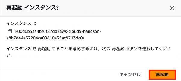 インスタンスの状態 > インスタンスを再起動をクリックします。