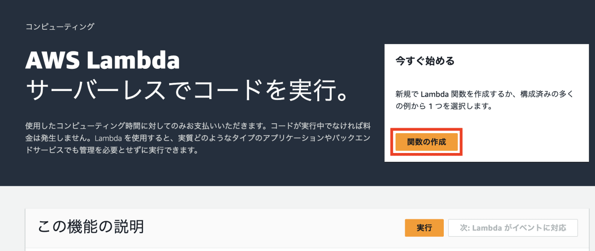 Lambda Functionで、エンドポイントの作成をやっていきたいと思います。