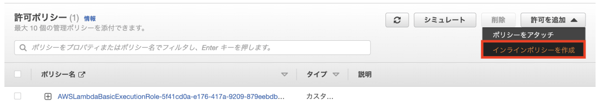 ・・・しまった、インラインポリシーがちゃんと追加できていなかった。