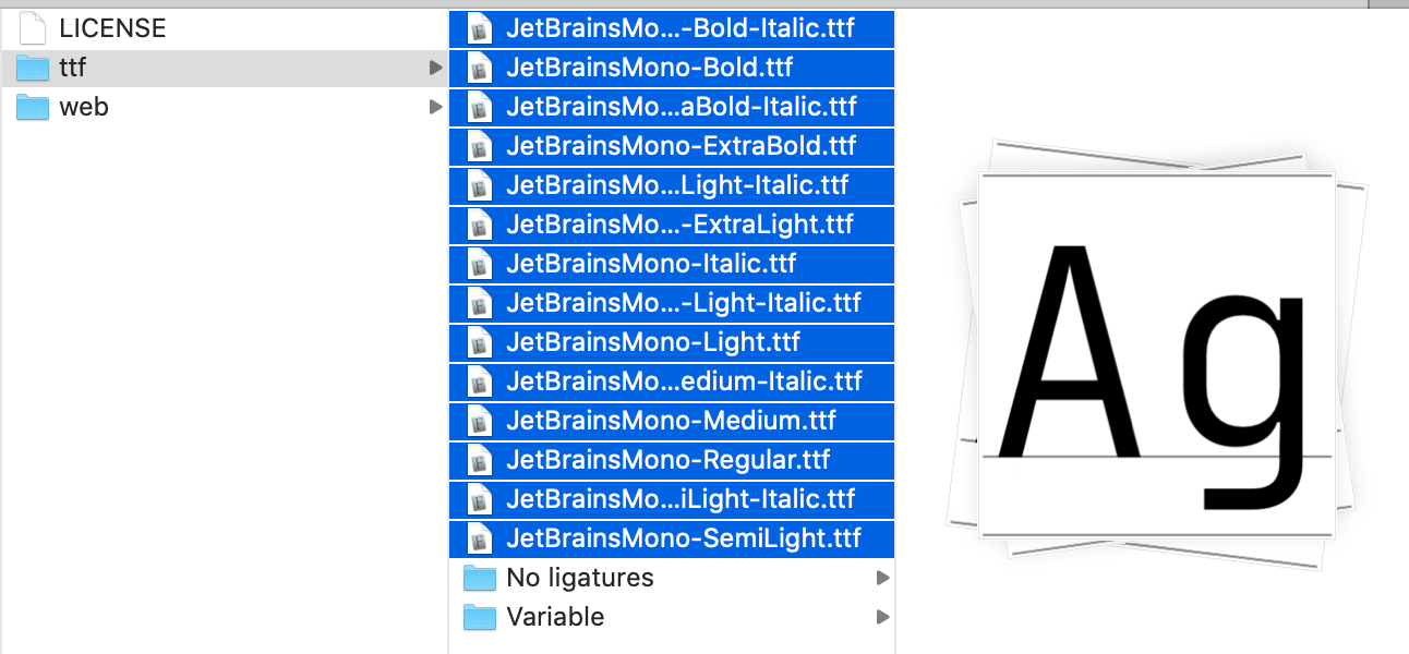 "editor.fontFamily": "JetBrains Mono",