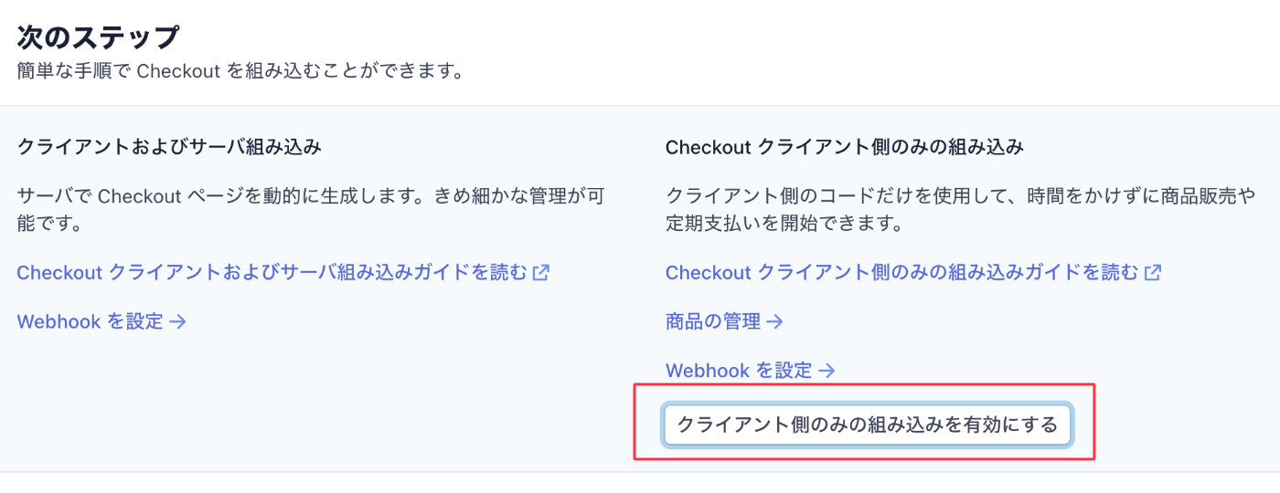 テスト用に配置した購入ボタンを押してもチェックアウトページに遷移しなくてハマった。