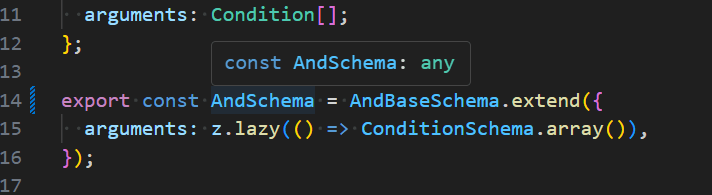 z.ZodType<And>を指定しない場合はAndSchemaの型がanyになってしまいます。