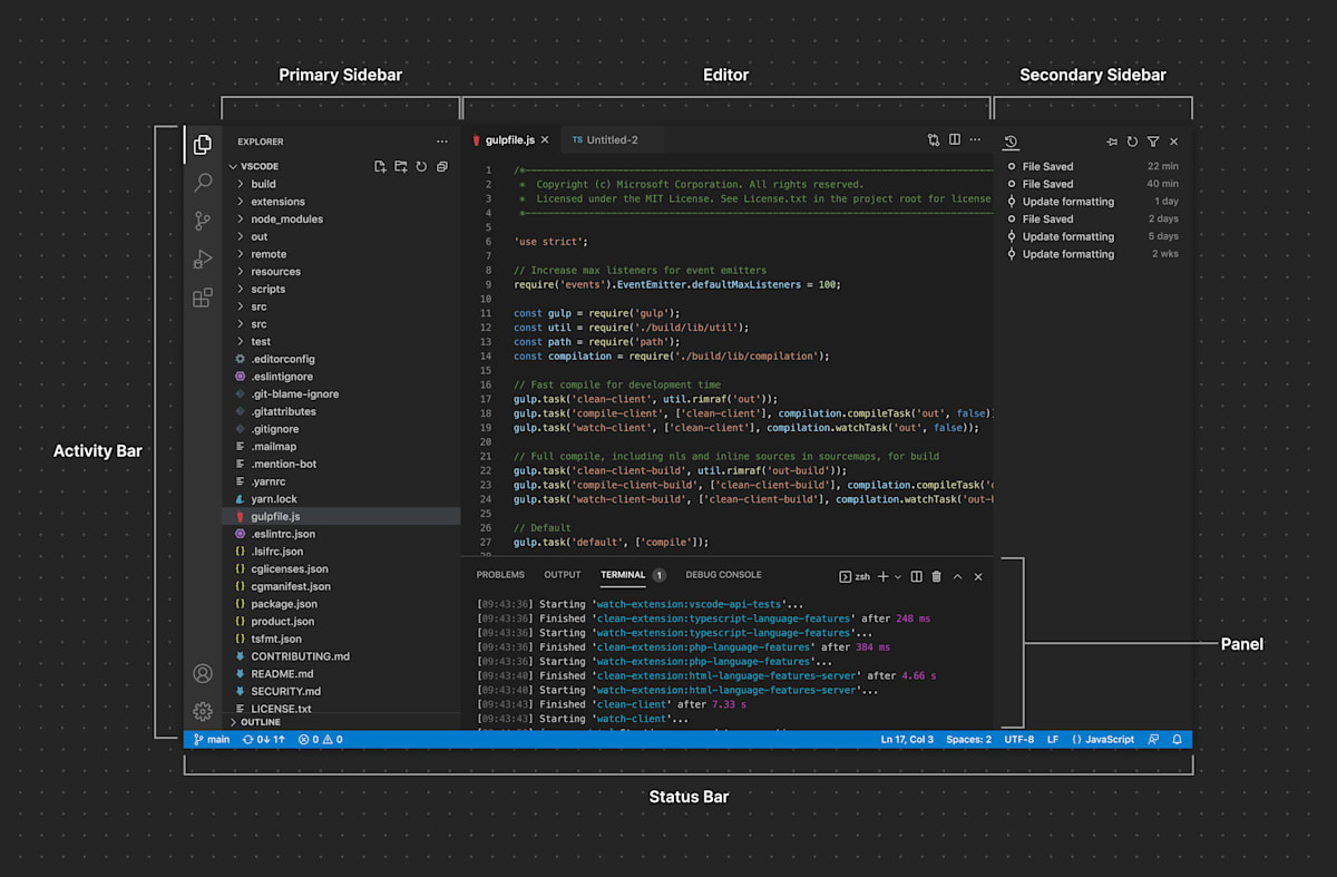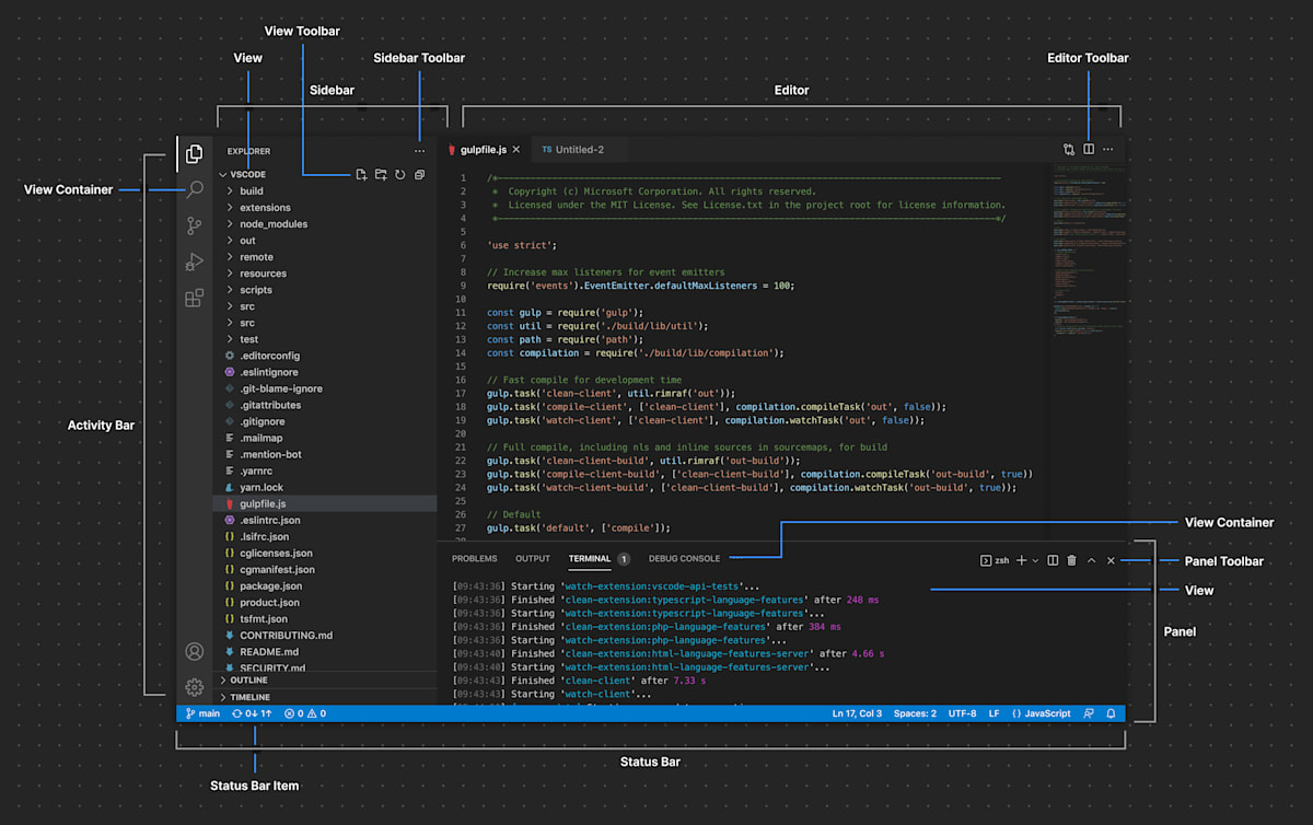 - Webview は、HTML/CSS/JavaScript で構築された高度にカスタマイズ可能なビューです。エディターグループ領域では、テキストエディターの横に表示されます。Webview の詳細については、Webview ガイドをご覧ください。