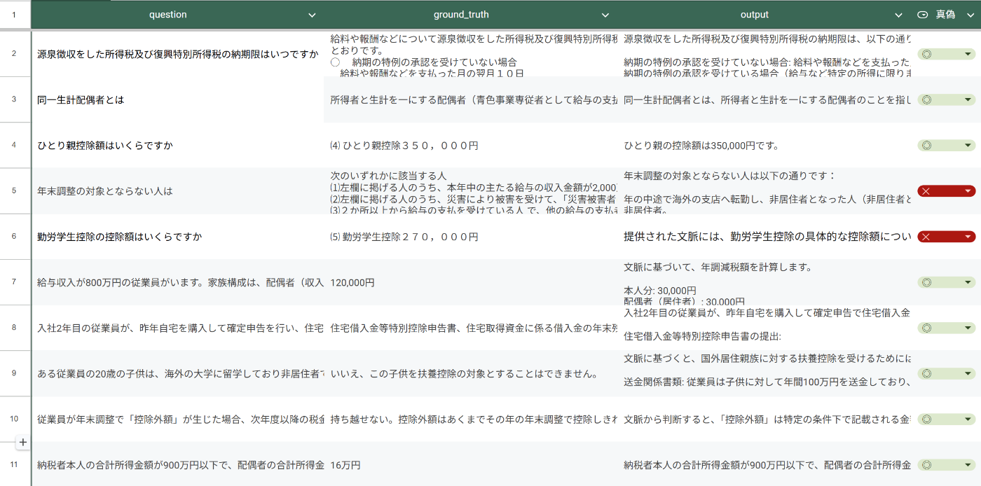 10問中8問は正しい結果が返ってきましたが、残りの2つはハルシネーションが含まれていたり、望ましい回答から程遠い結果が返ってきました。