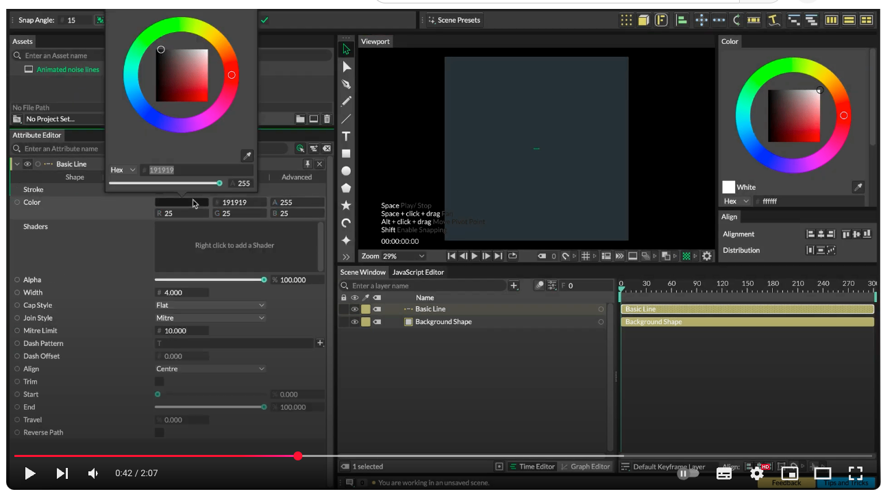 線を作成する時に動画では「Scene Window」に「Basic Line」が追加されるが、