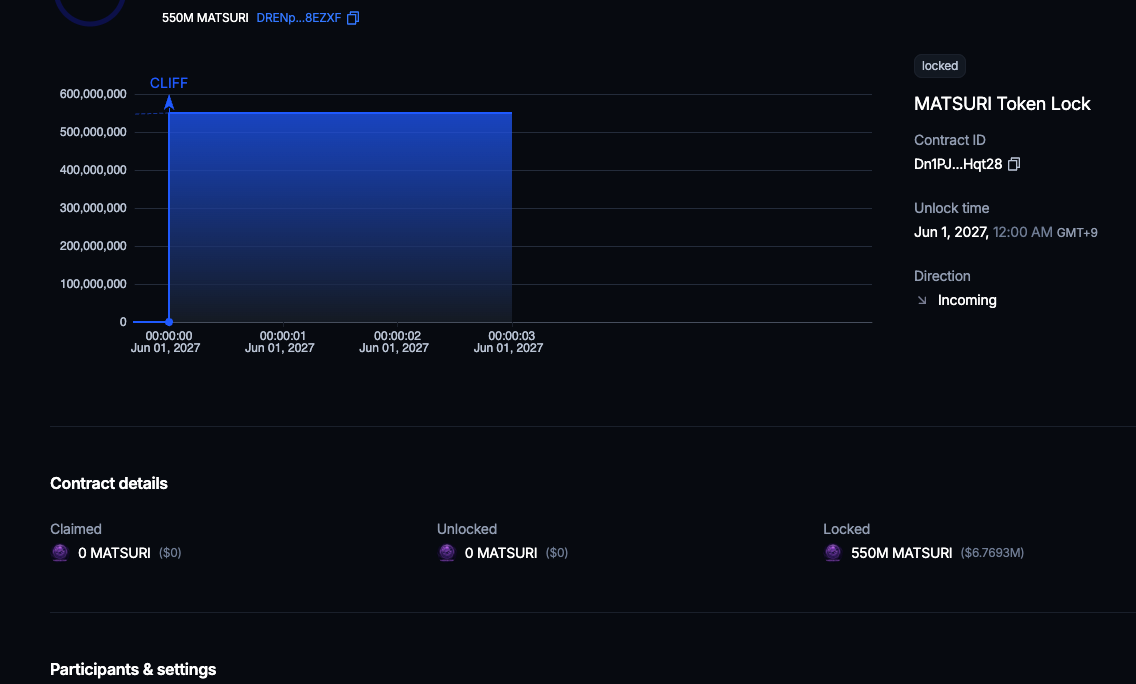 本日、プロジェクトの大きなマイルストーンとして、発行したトークン($MTC)の過半数にあたる**5.5億枚(Total Supplyの約61%)**を、スマートコントラクトを用いて2027年まで完全ロックしました。