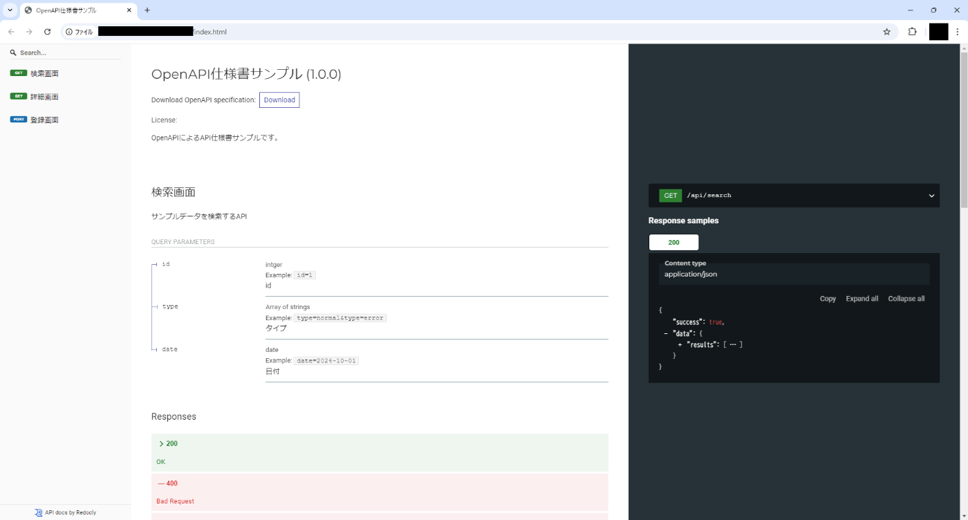 最後に記述したOpenAPIソースをhtmlファイルに書き出していきます。