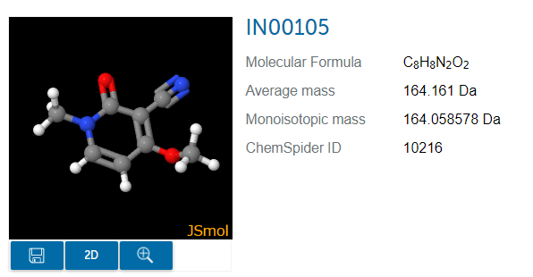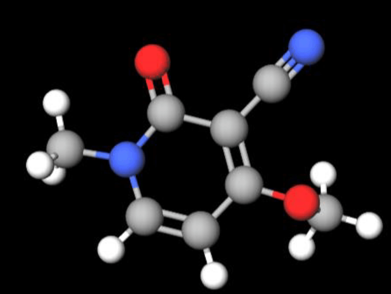 起床したkn1cht、 Diffuseが分子モデルの画像から数えてC8H8N2O2をChemSpiderで検索。ベンゼン環1個でシアノ基1個、メチル基2個っぽい構造をしばらく探すと同じものが見つかる。