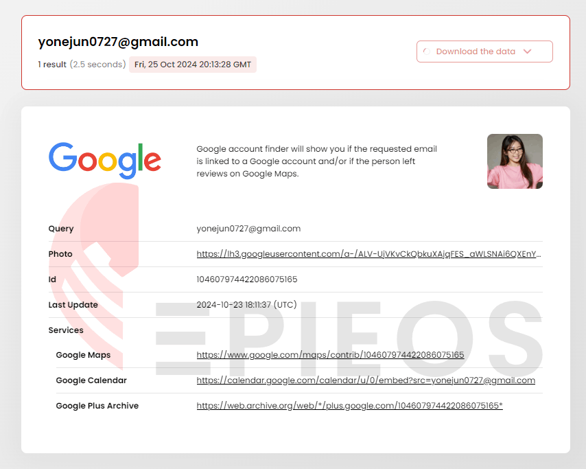 ということで、残った情報は名刺に載っているメールアドレス(Gmail)だけになります。