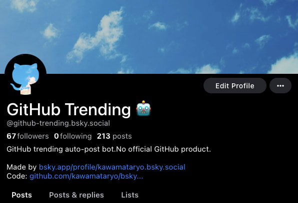 最新の GitHub Trending Repository を定期的に投稿する Bluesky ボットを作りました。 全体のトレンドと、JS/TSのフロントエンドのトレンドを投稿する2つのBotがあります。
