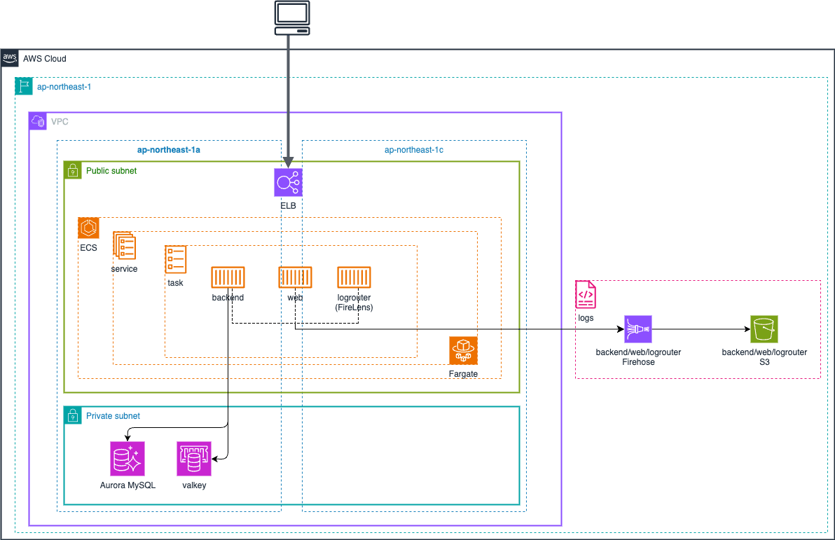今回Terraform化する環境は、すでにAWSのコンソール上にありました。