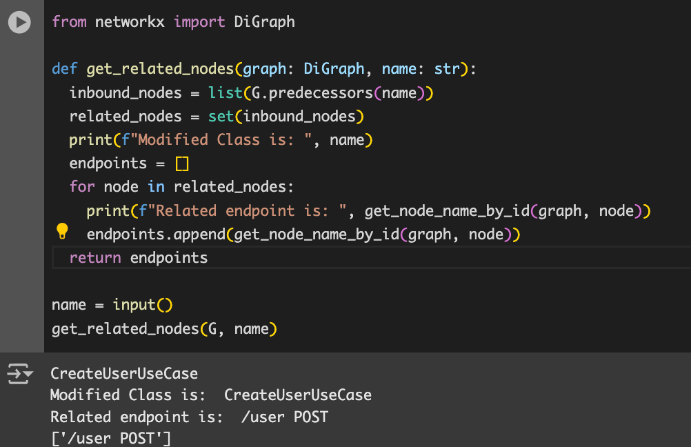 CreateUserUseCaseを変更した場合は、userを作るエンドポイントが影響範囲であることが出力されました。