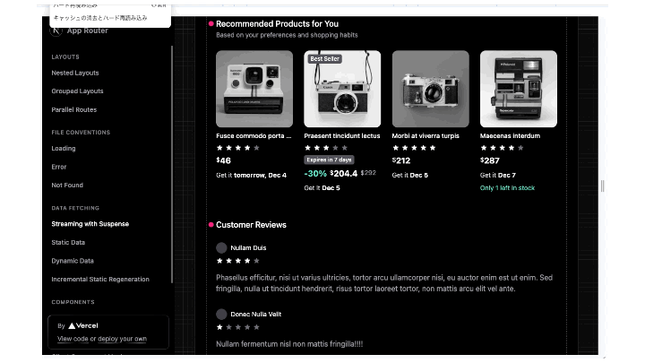SSR Streaming は概要の説明だけでひと記事になりそうなので割愛します😇
