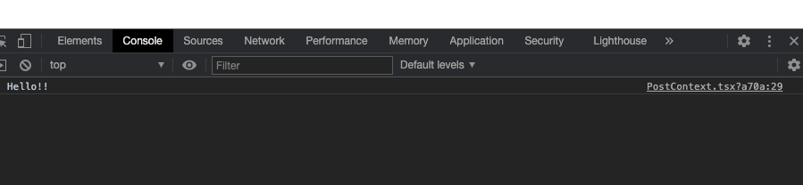 画像の通り、Hello!!と表示されているので、エラーは治り、無事にcontextが使えるようになりました!!