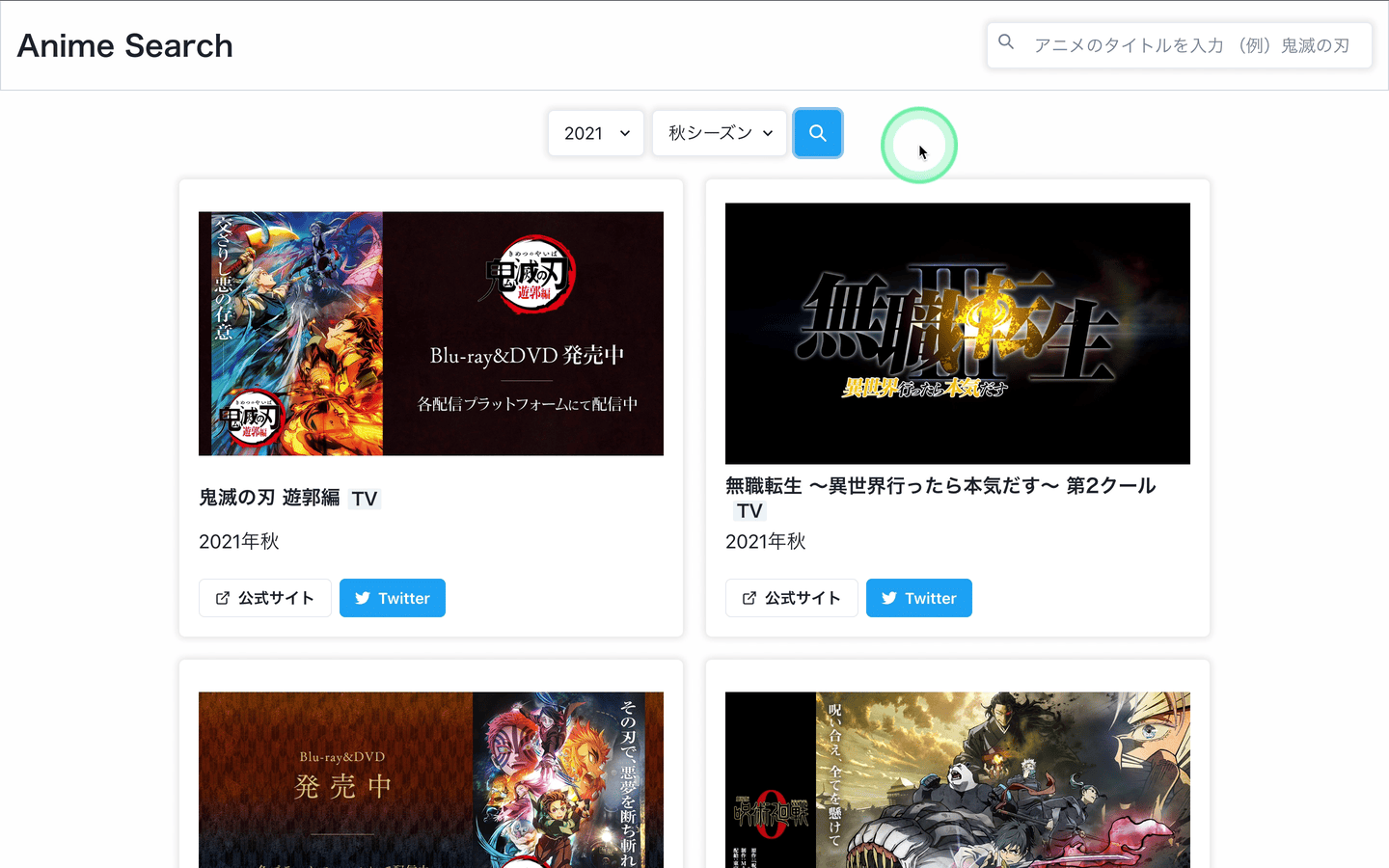 シーズンやタイトルでアニメを検索できる Web アプリを作成しました。