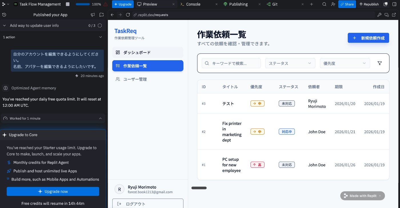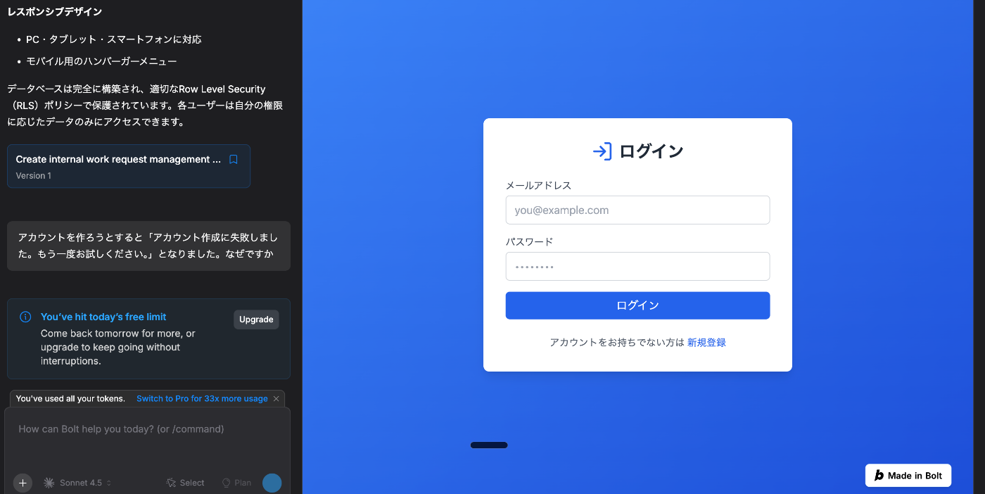 - ただし、無料枠ではトークン消費が厳しく、完成まで届かない