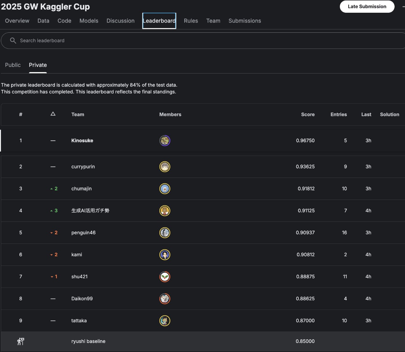 また、画像コンペも生成AIで解く時代がやってきたなと、時代の潮流を感じました。