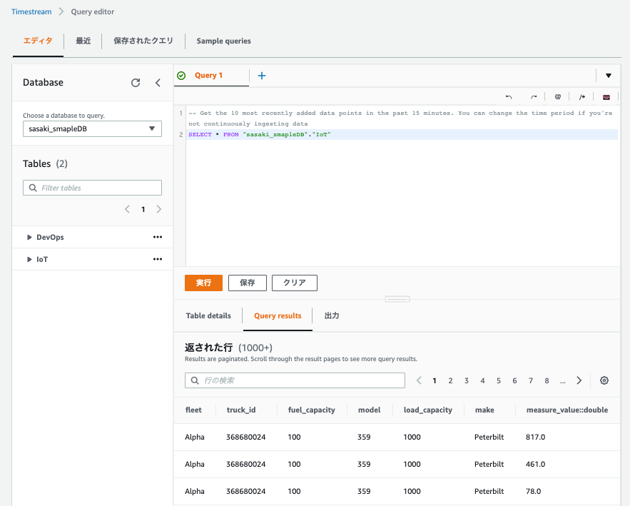 AWSコンソール上でのクエリの実行