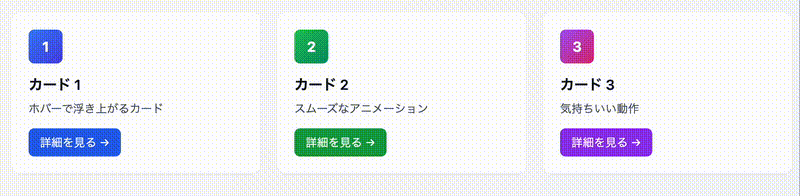 - カードの“生き物感”:hover:scale-[1.01] + hover:-translate-y-1 と遅めの ease-out。影も一緒に変える