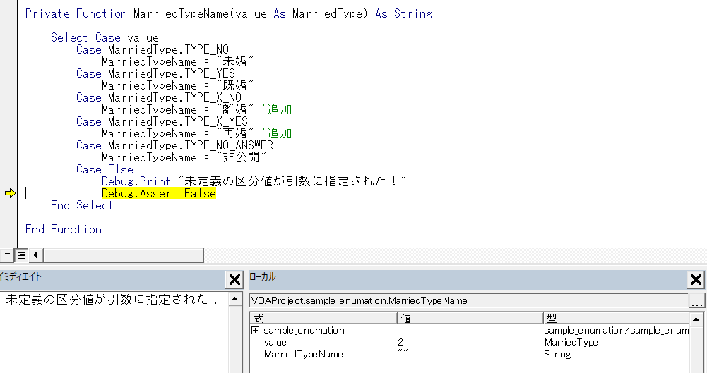 結果、Case Elseに該当し、アサーションが発生してしまいます。