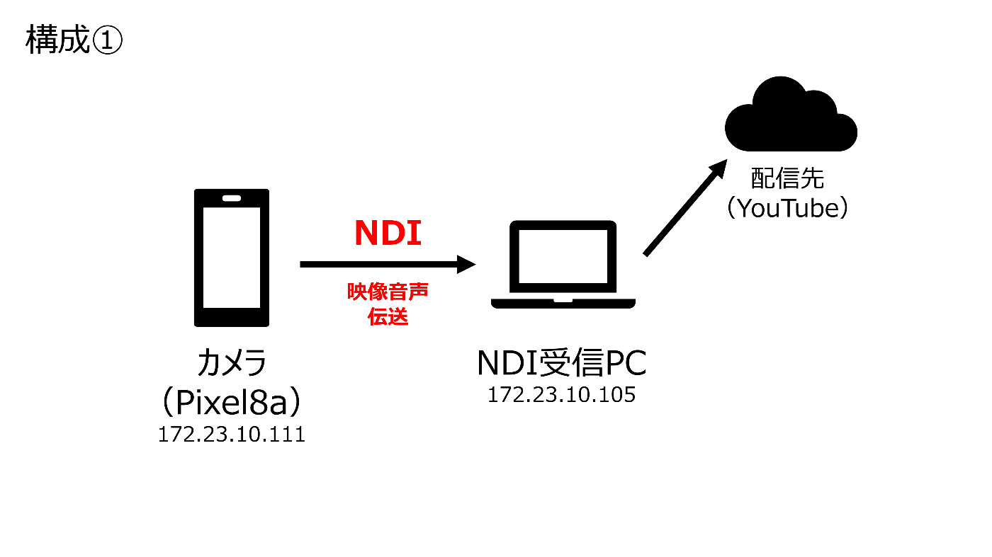 - 機材:スマートフォン(Pixel8a)、コントロール用ノートPC、別セグメント転送用ノートPC