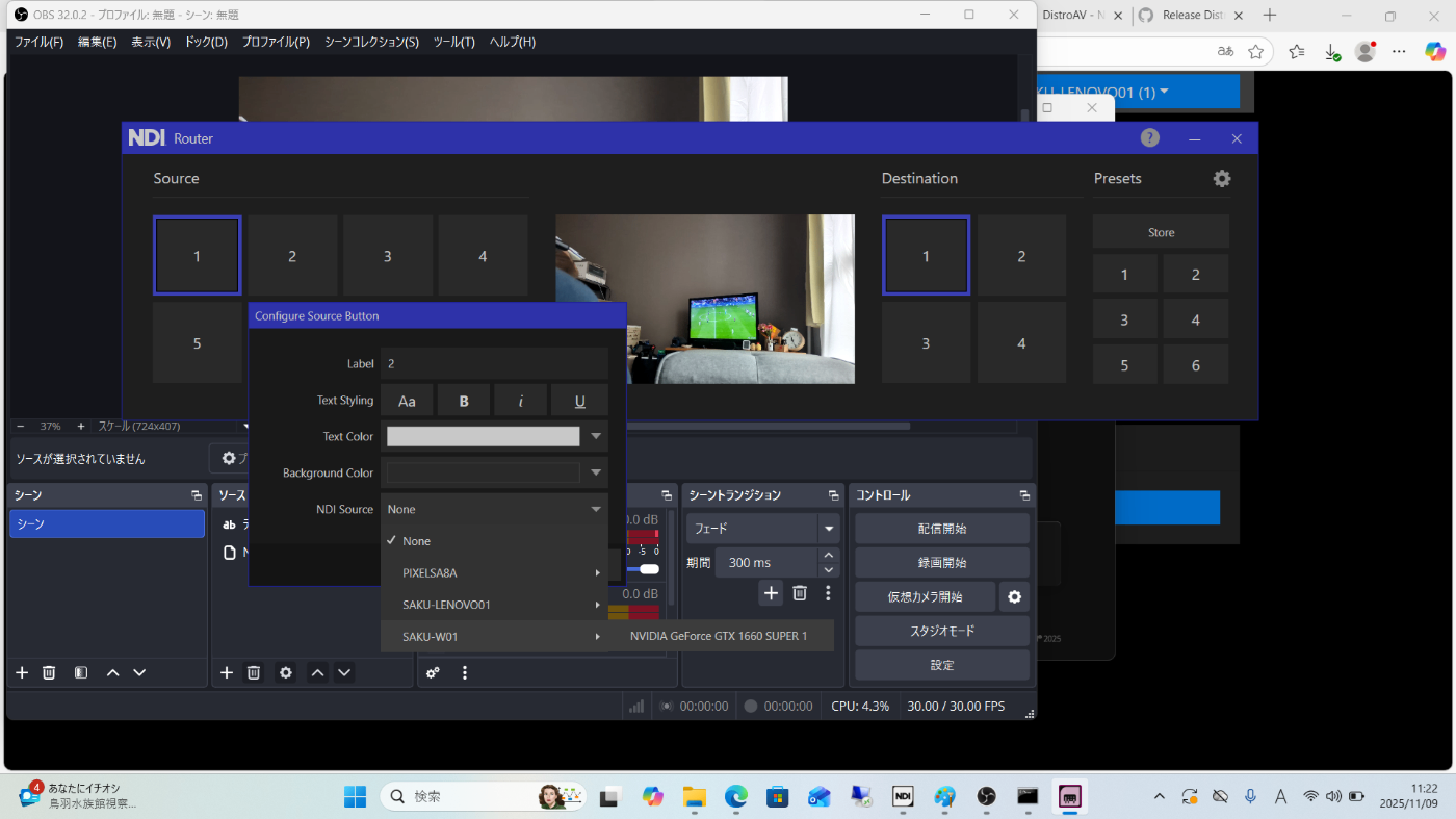 NDI Toolsの「Router」から、「Source」の番号で右クリックし、「Configure」から入力ソースを選択して表示を確認する。