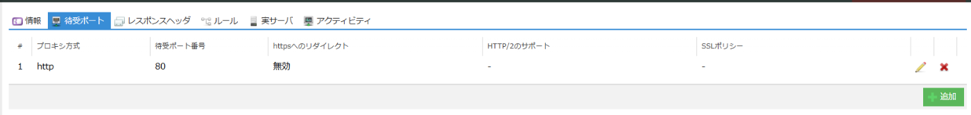 もう一つ待ち受けポートをhttp/80で追加します。これは冒頭で説明したACMEの実行に必要なものです。
