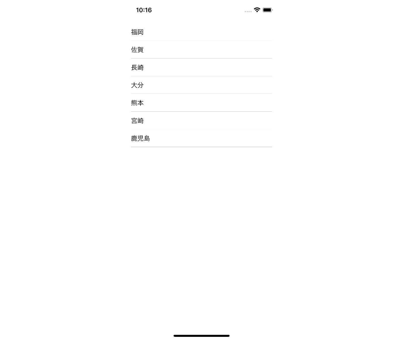 let prefectures: [String] = ["福岡", "佐賀", "長崎", "大分", "熊本", "宮崎", "鹿児島"]