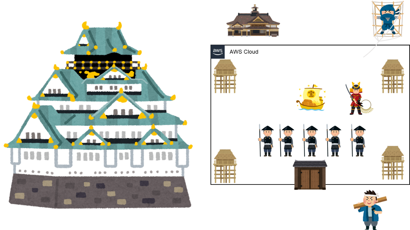 AWSが提供する多様なセキュリティサービスは、まさにこの城を守るための様々な役割を担う兵士や防衛設備!!