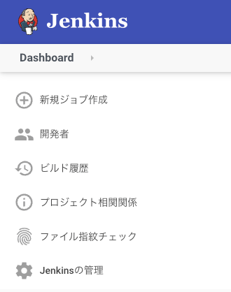 Jenkinsの左メニューから「Jenkinsの管理」を選択