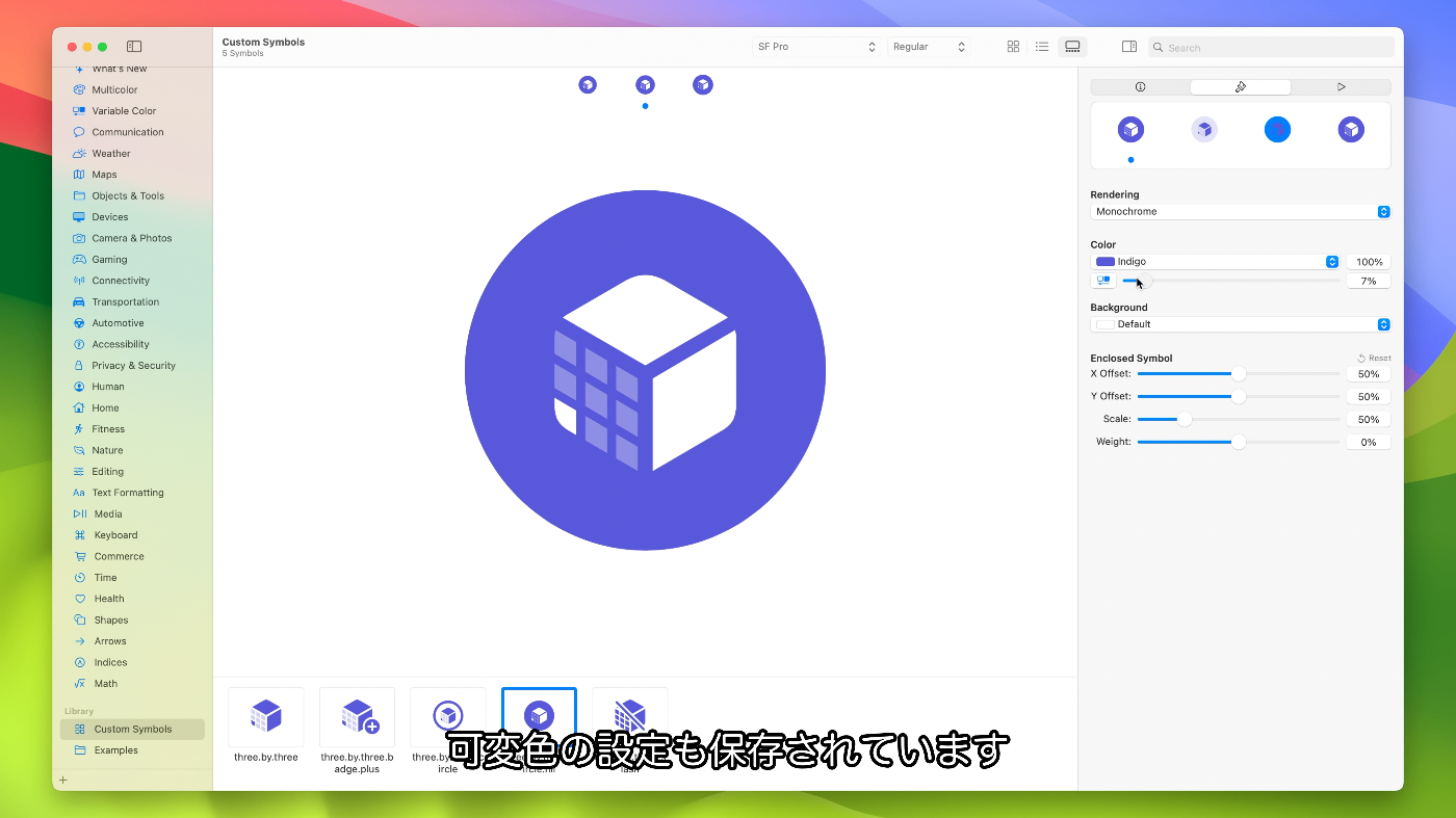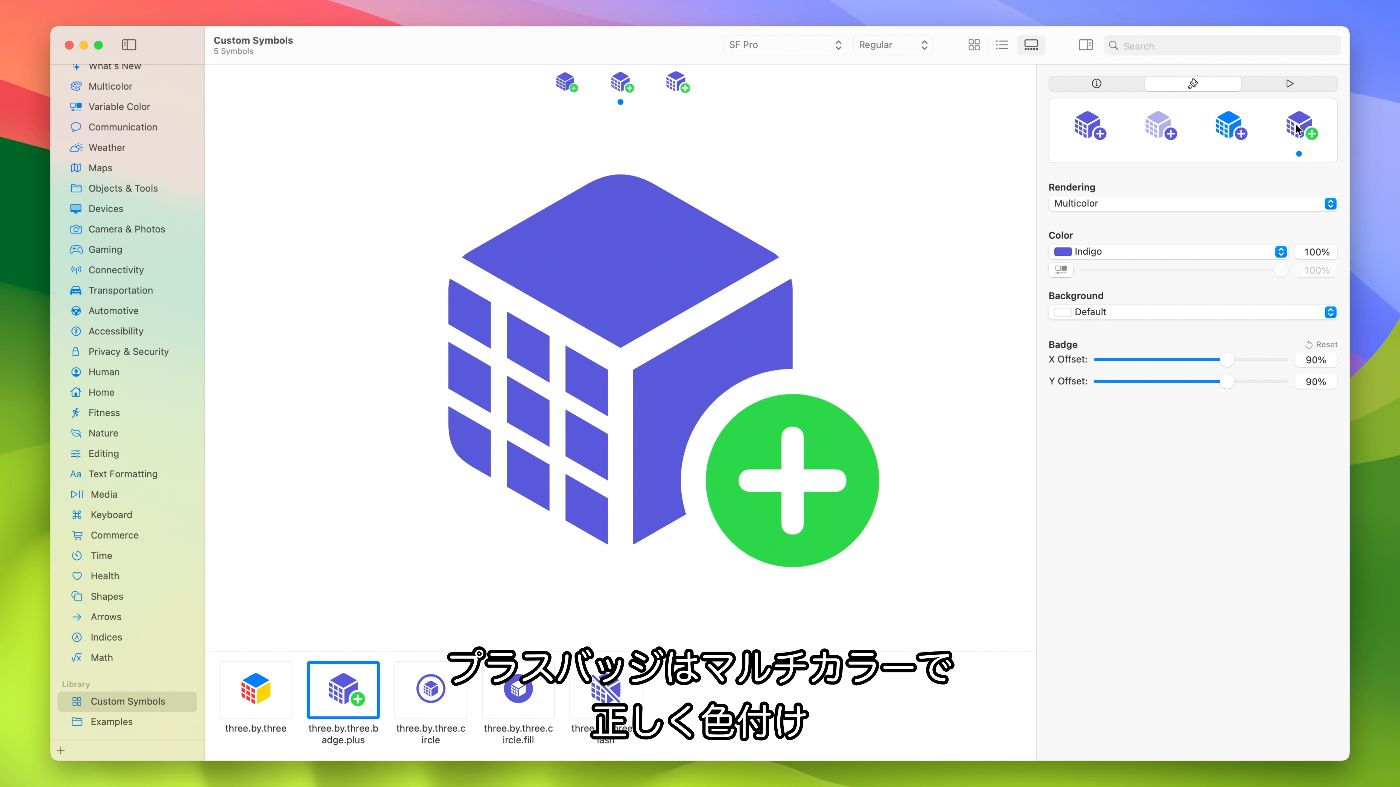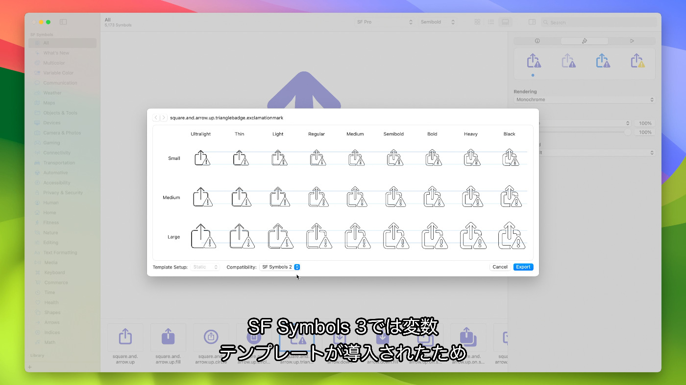 - iOS 14やmacOS Big Surに対応するSF Symbols 2をターゲットとしている場合、SF Symbols 3では変数テンプレートが導入されたため静的テンプレートが自動的に取得される
