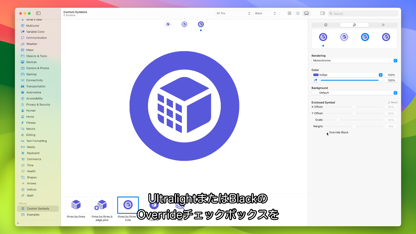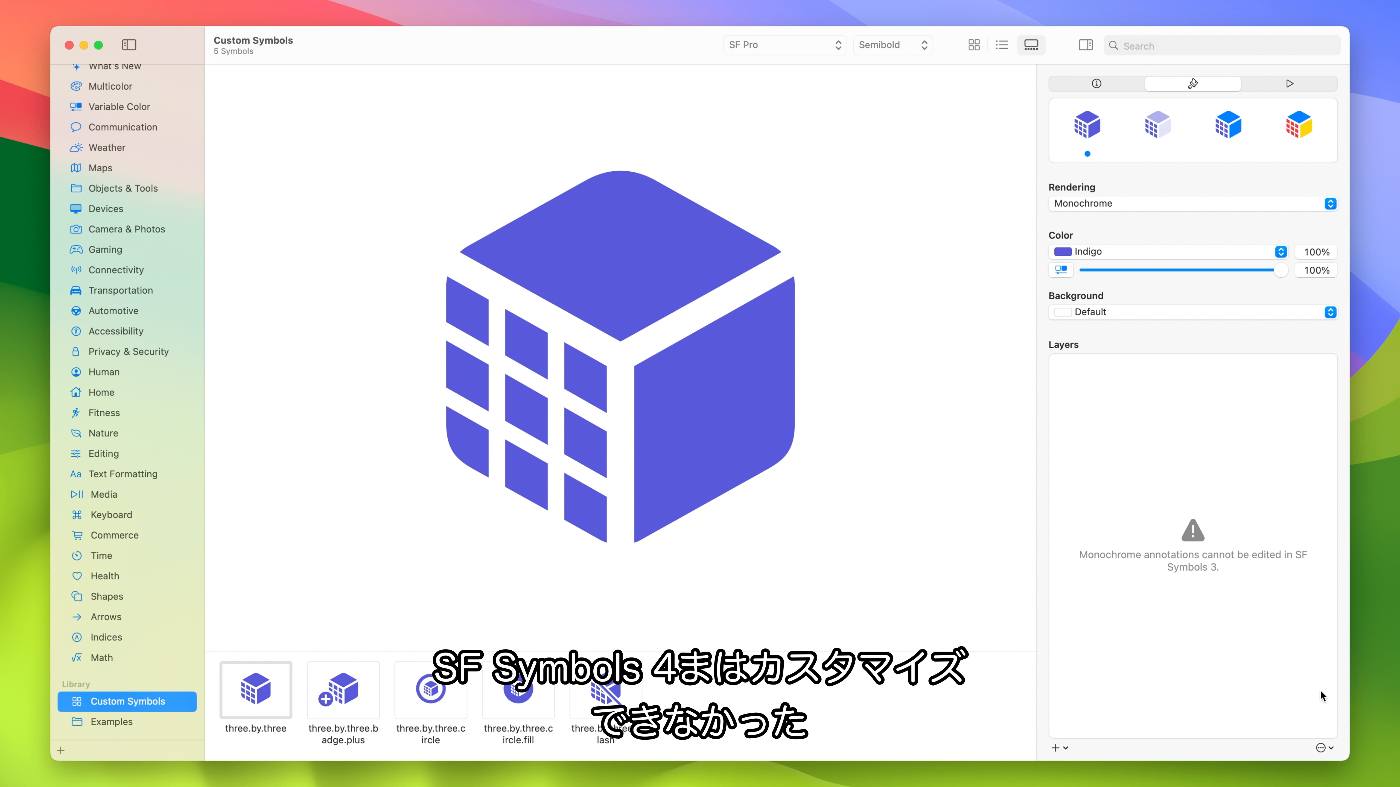 - SF Symbols 3以前を選択すると、モノクロのアノテーションを編集できなくなる
