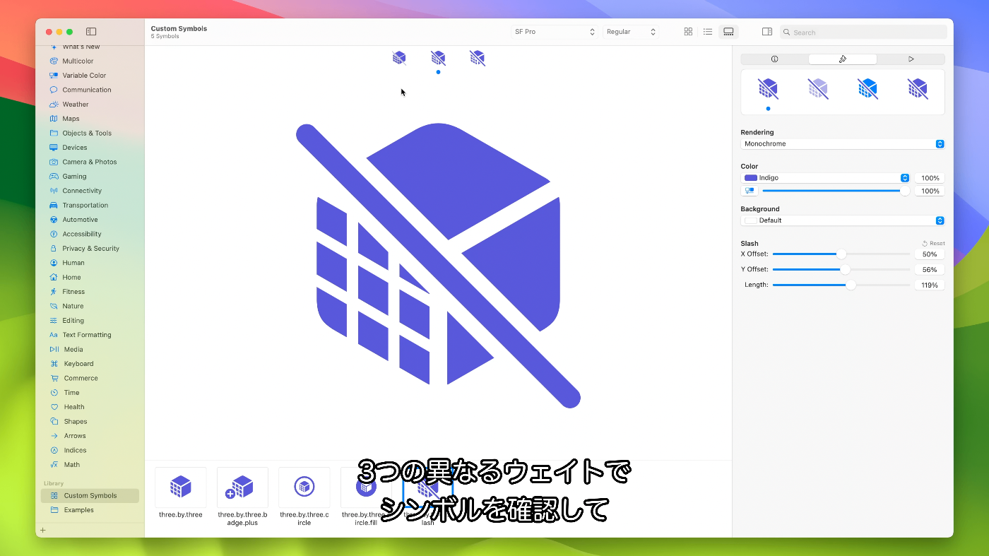 - 3つの異なるウェイトでシンボルを確認できる