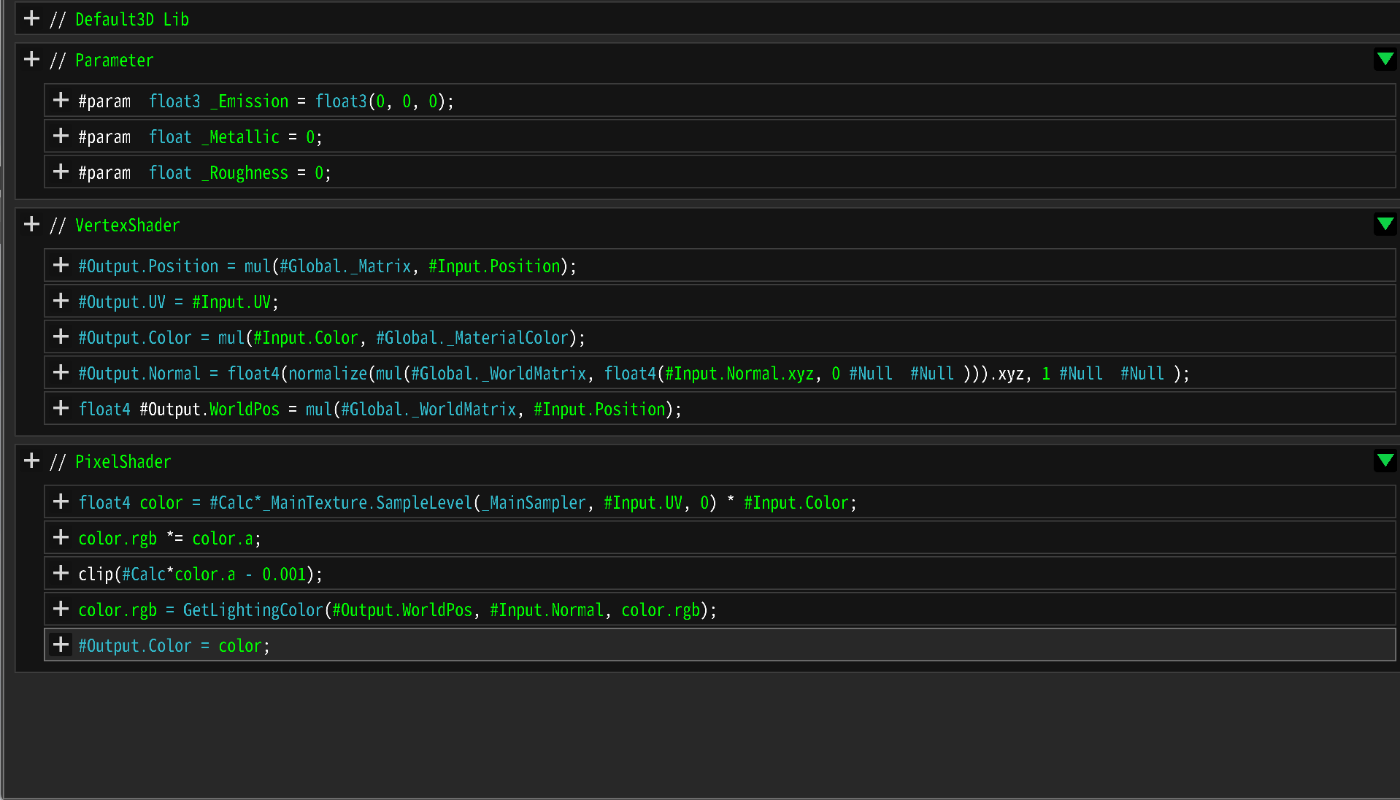 1行単ではなくて「値」単位でシェーダーを構築できるようにしました。