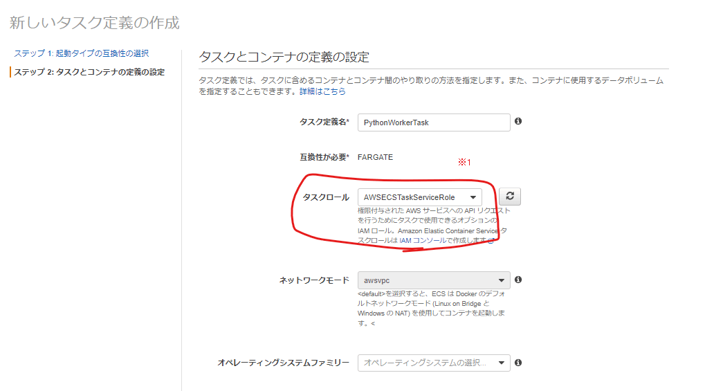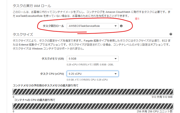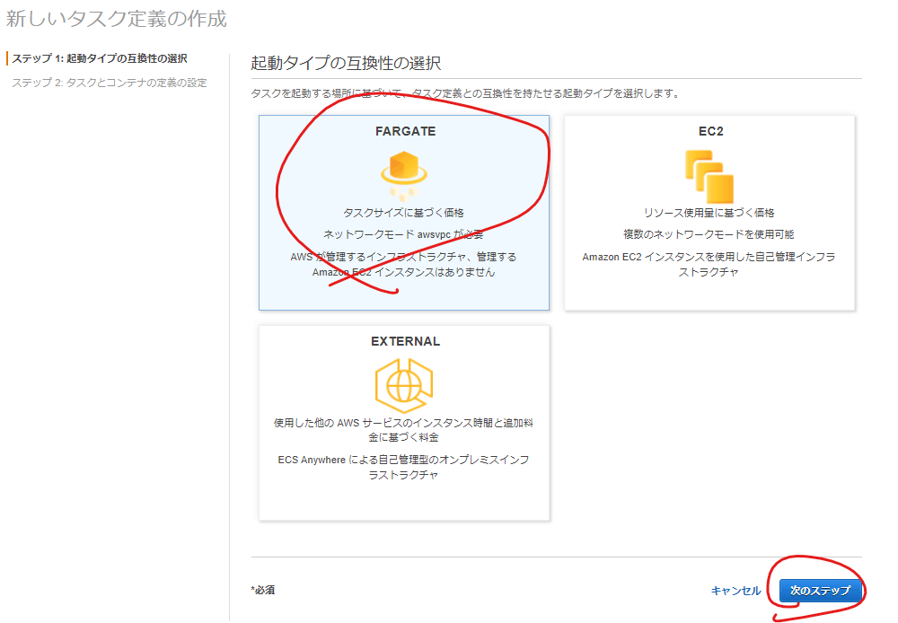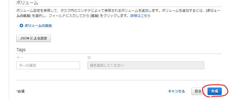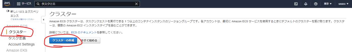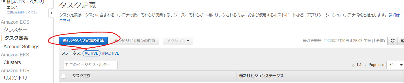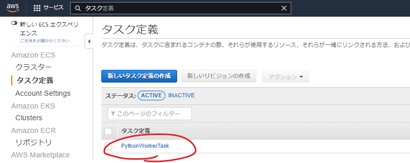 AWSコンソールからElastic Container Service > タスク定義を表示