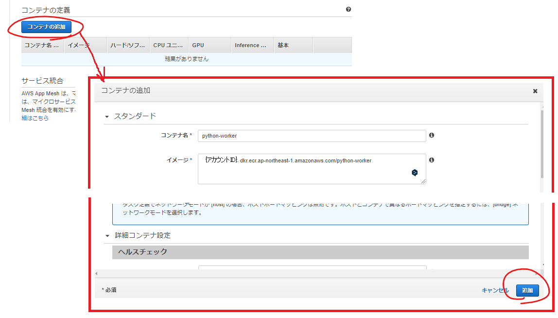 Amazon ECR リポジトリのコンテナを追加して作成する