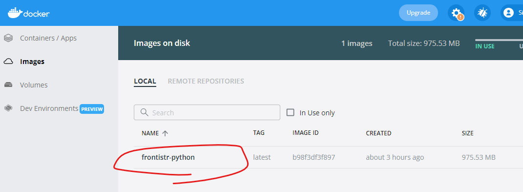 FrontISTRとpythonがインストールされているDockerイメージから新しいDockerイメージを作成します。
