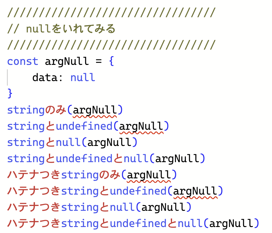 そして、ここから実際に関数を呼び出して型エラーが出るか、挙動を確認していきましょう。