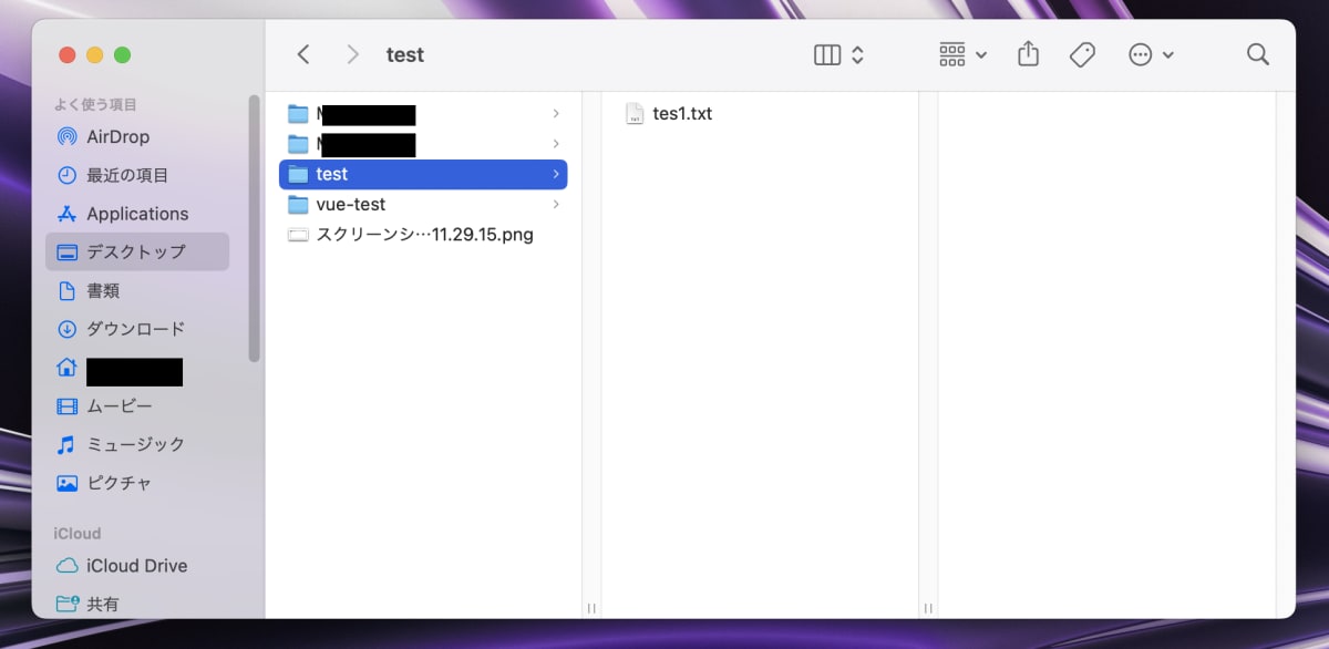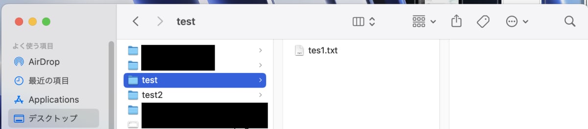 これでデスクトップにtestというディレクトリができました