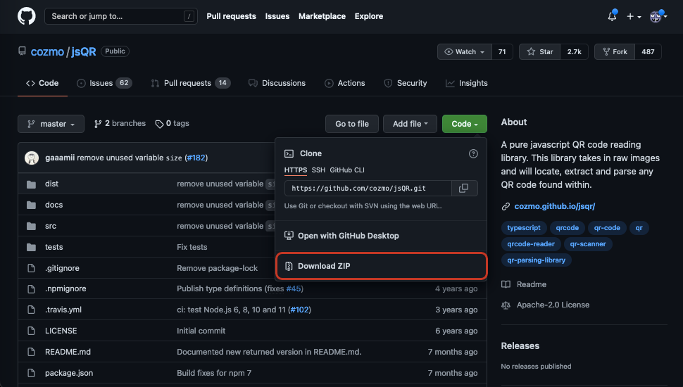 解凍したフォルダ中にある"jsQR.js"がライブラリ本体です。