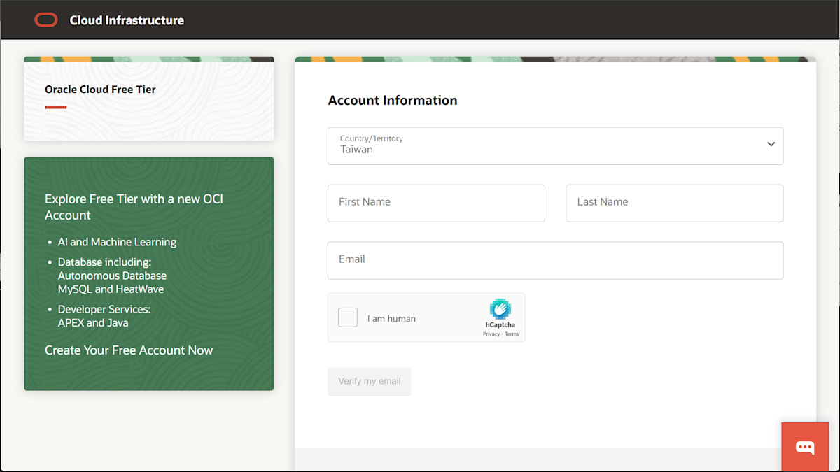 To get started, visit https://oracle.com/tw/cloud/free in either chrome or the browser of your choice. I created mine using chrome.
