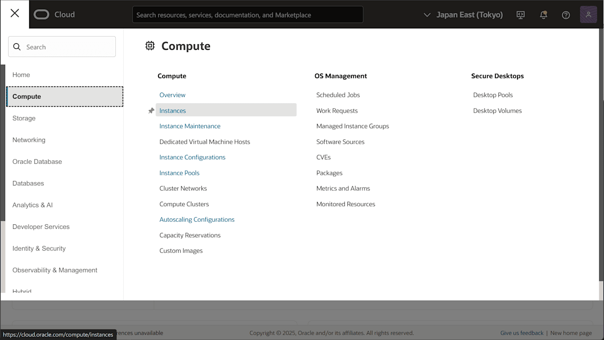 icon, that's where we can create our VMs. If you don't see anything, try select the compartment like this