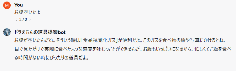 以下が作成した「ドラえもんのひみつ道具提案bot」です