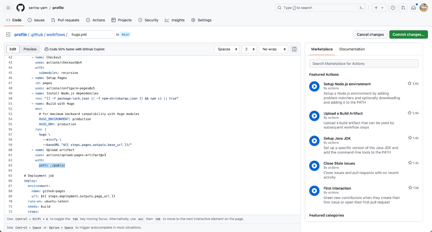 Hugo×GitHub Pages×GitHub Actionsでプロフィールサイト作成
