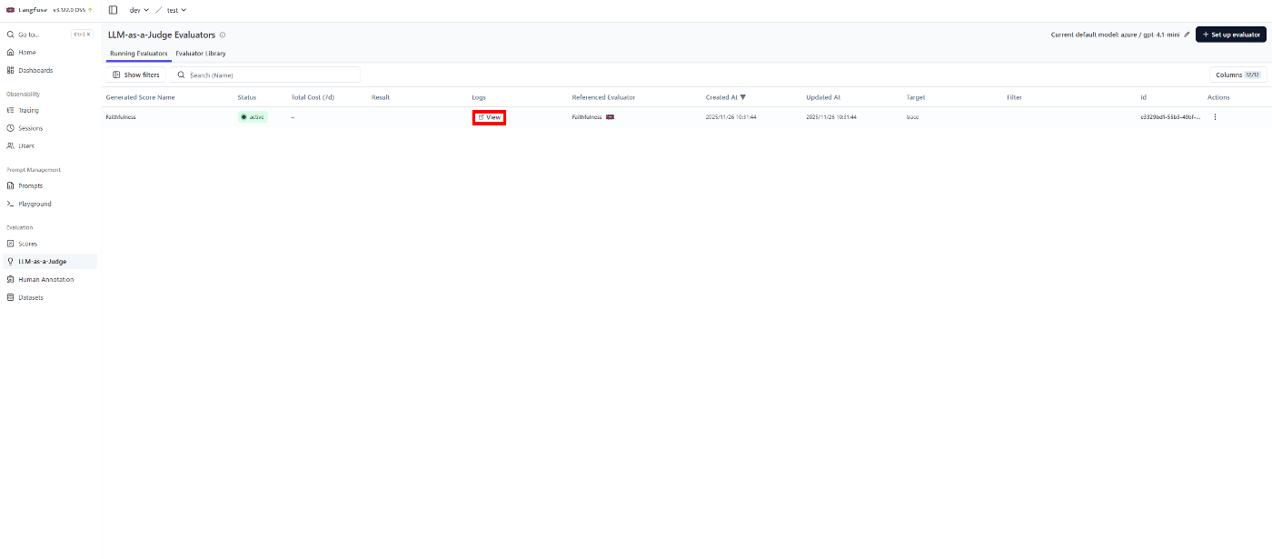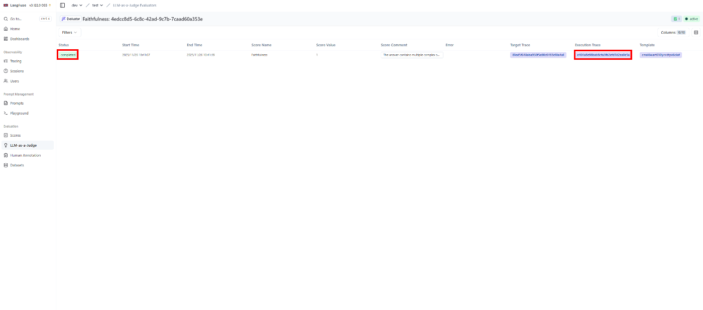 評価が終了するとStatusがcompletedとなります。Execution Traceを選択し、評価結果を参照できます。