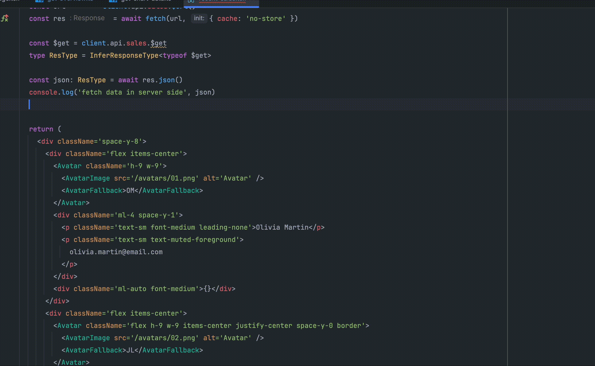 サーバーコンポーネント内でデータを取得するための関数は以下のように定義してあります。