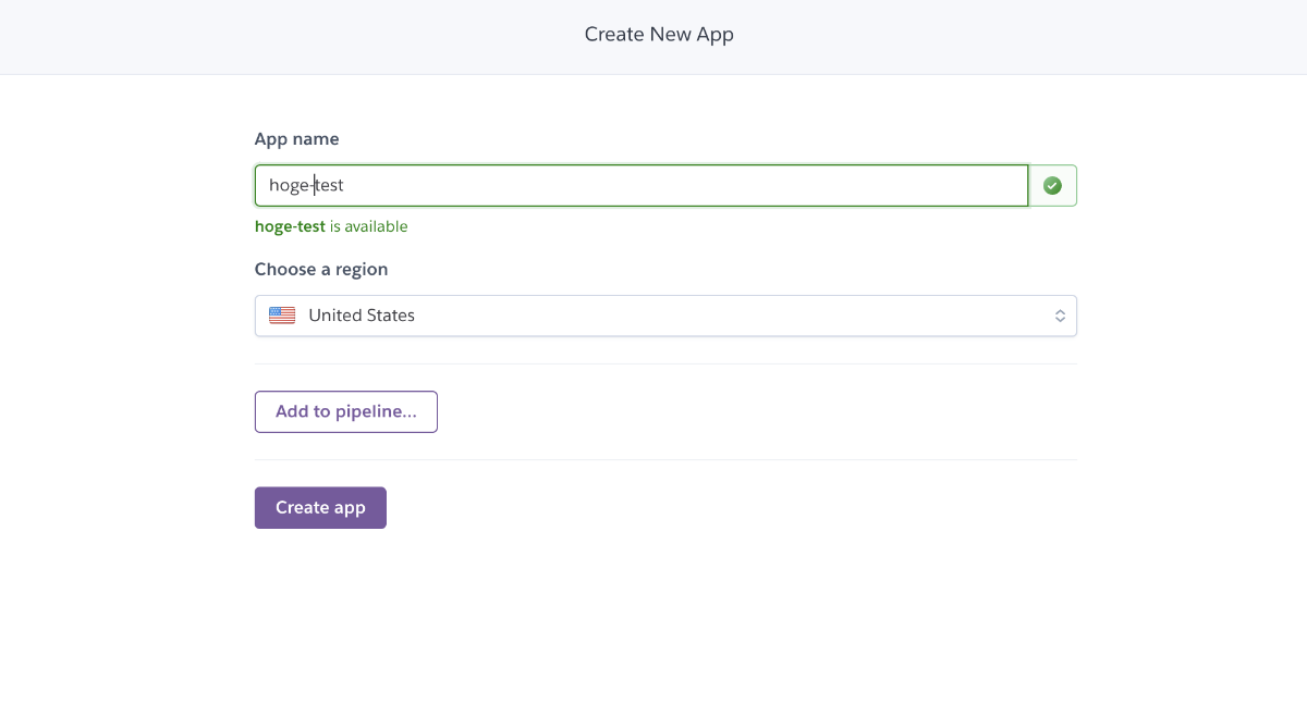 herokuのWEBUIからアプリ作成