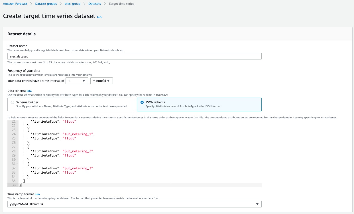 予測を行うためのデータセット・データセット群。予測対象の時系列データ、マッピング定義であるスキーマを用意し、Amazon Forecastに読み込み、学習を行う。データセットは、メインの時系列データ、関連する時系列データ、メタデータ3種類からなる。各種データセットはデータセットグループでまとめることが出来る。