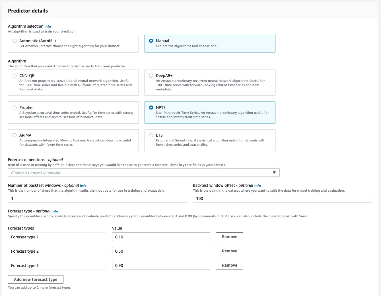 | CUSTOM ドメイン | その他すべての時系列予測のタイプ |