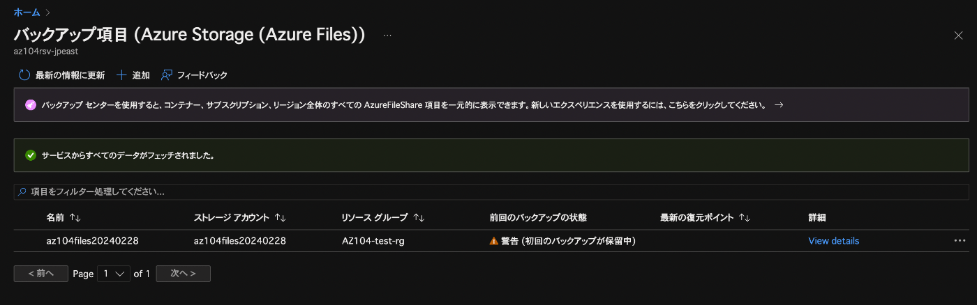 以前投稿した【Azure】Azure Filesをバックアップするという記事内で、Recovery Services コンテナでAzure Filesをバックアップしました。